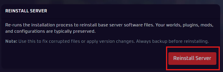Warning: We always recommend creating a backup of your current server files before performing a reinstall, just to be safe.