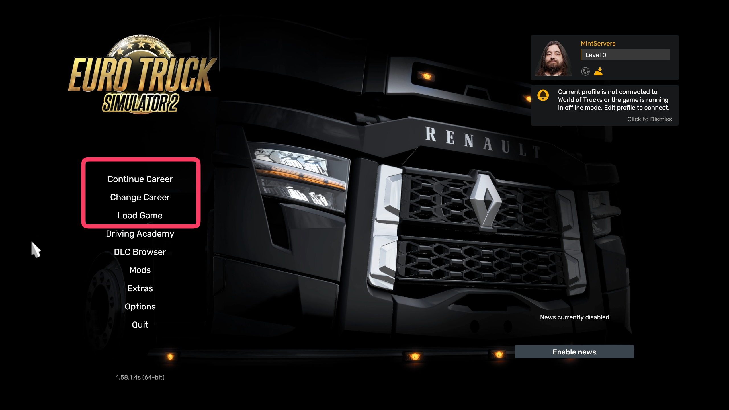 - Launch ETS2 or ATS and load into your career profile.